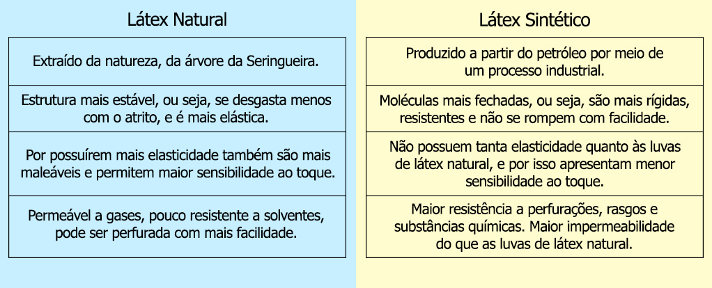 But in addition to natural latex, it is also possible to find synthetic versions, produced from an oil industrialization process. There are several types of synthetic latex, such as nitrile and neoprene, which are common substitutes for natural latex, especially for people who have allergies to the natural substance.