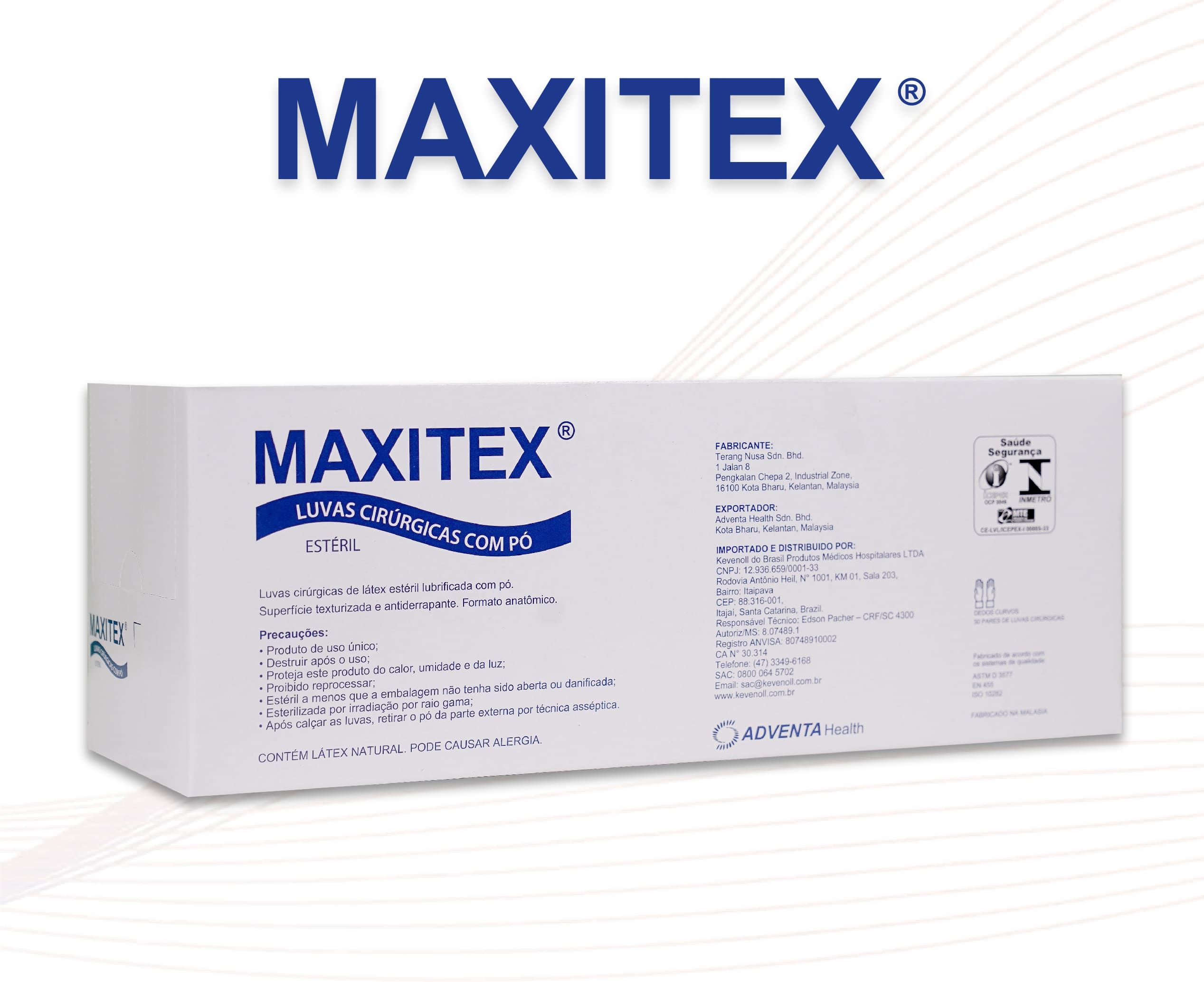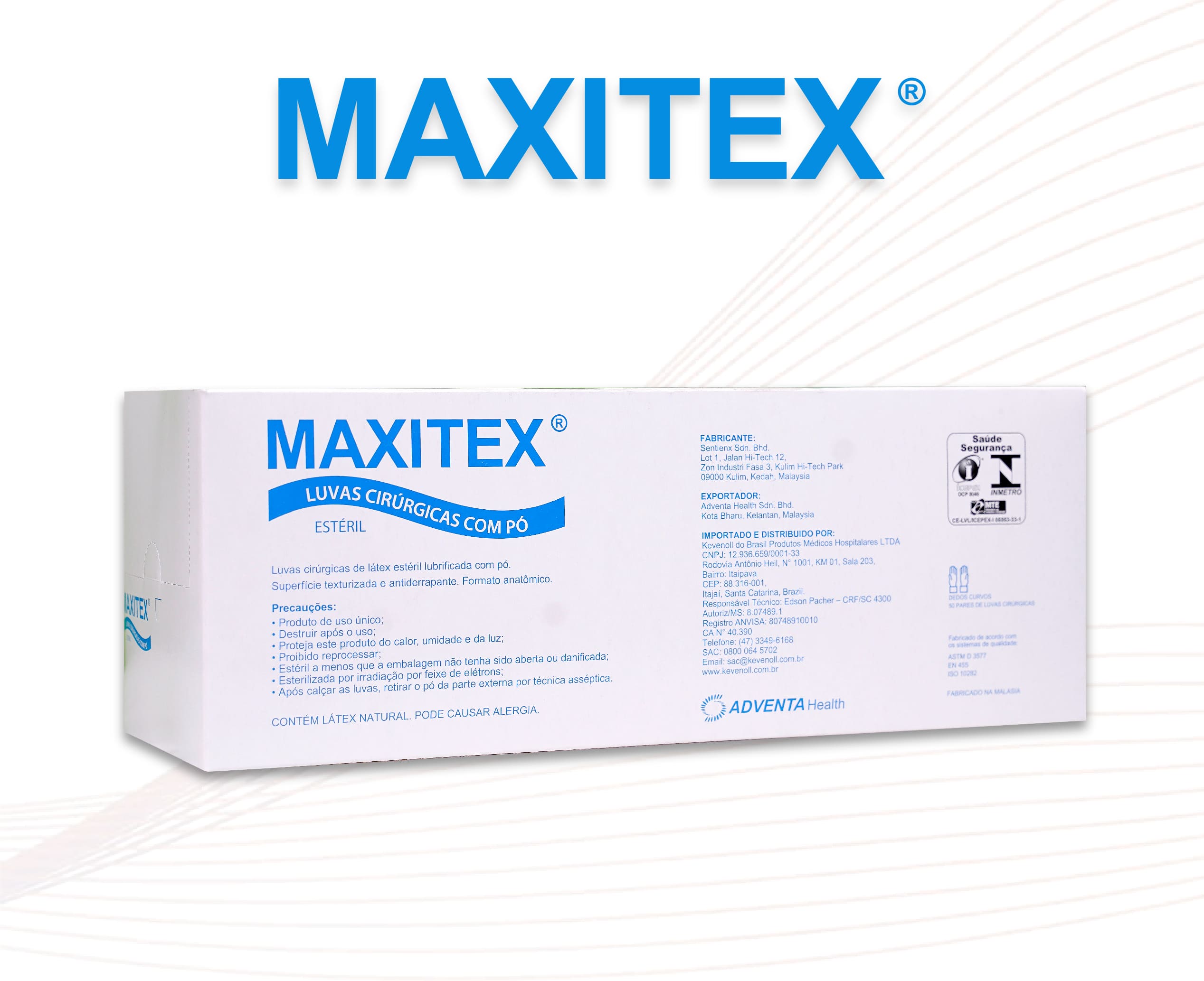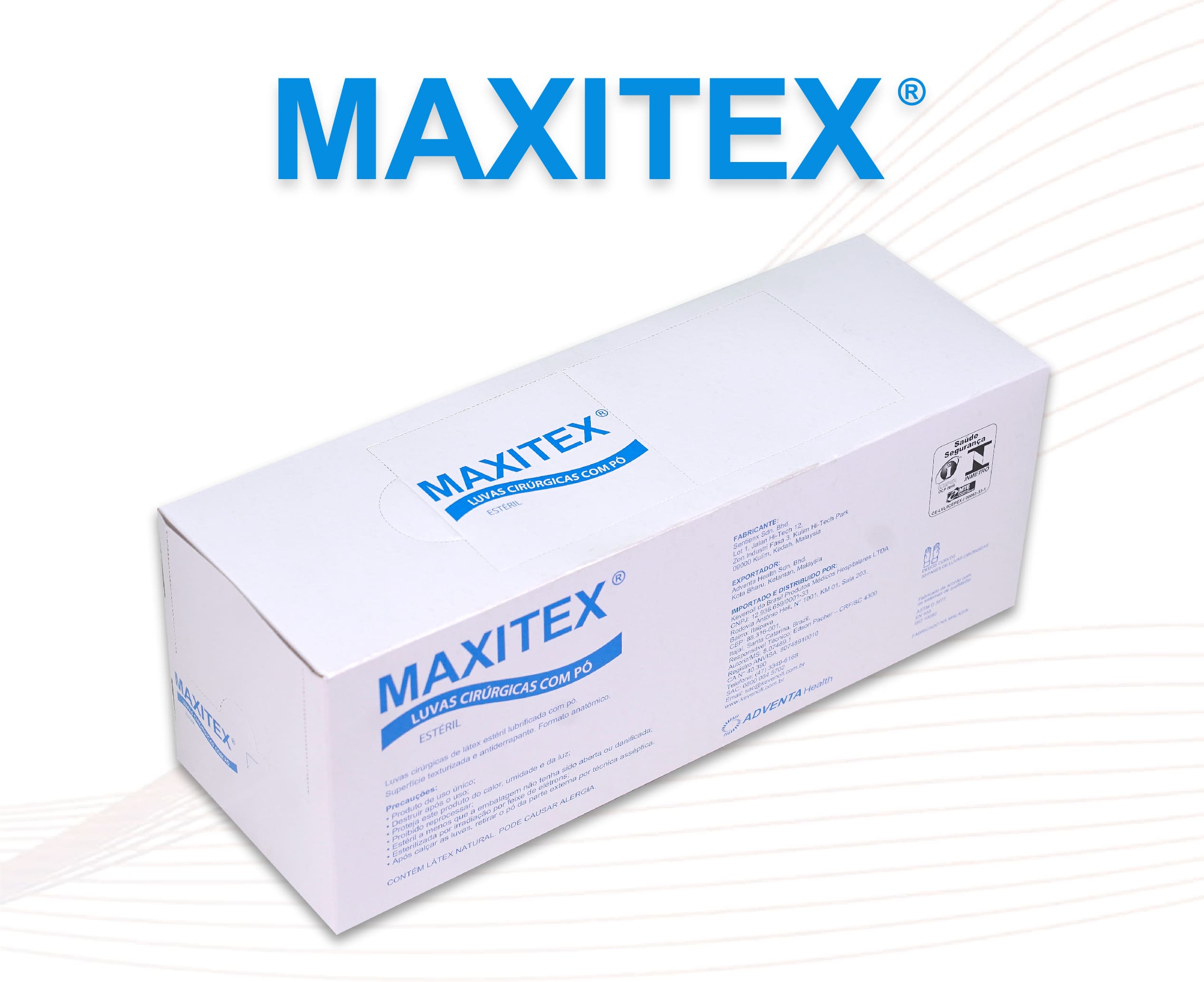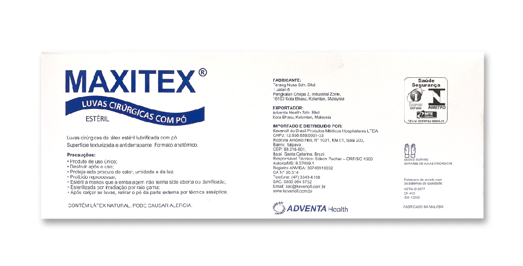 Classification: MAXITEX PF Surgical Gloves meet the INMETRO Ordinances 332 and 451, ABNT NBR ISO 10282 and NR6 of the MINISTRY OF LABOR.