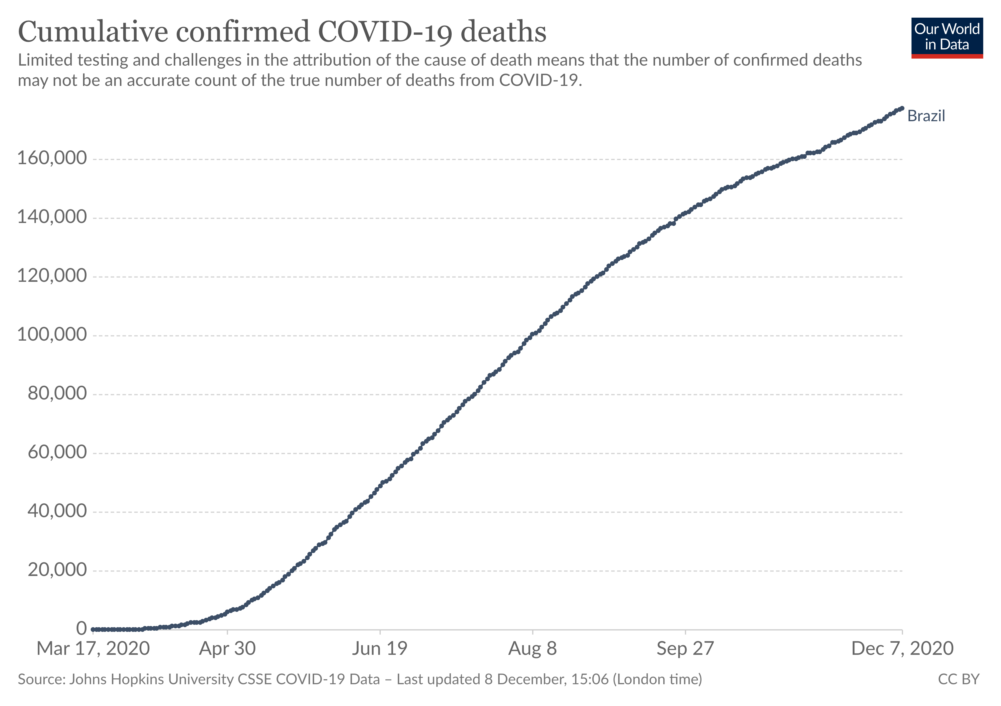 Después de una leve caída desde agosto hasta principios de noviembre, los casos solo aumentan en Brasil. Se ha informado que la tasa de mortalidad promedio de Covid-19 es la más alta desde el 11 de octubre.